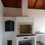 Jedna z posledních realizací zahradního krbu s udírnou. Otevřený krb má plochu cca 80 x 60 cm je vybaven zářezy pro grilovací rošt a popelníkem. Odvod spalin zajišťuje zděný komín s nerezovou vložkou o průměru 250 mm. Udírna v levé části má dvě patra pro zavěšení uzenin. Moderní design a velké odkládací plochy z leštěného kamene umožňují pohodlnou obsluhu.